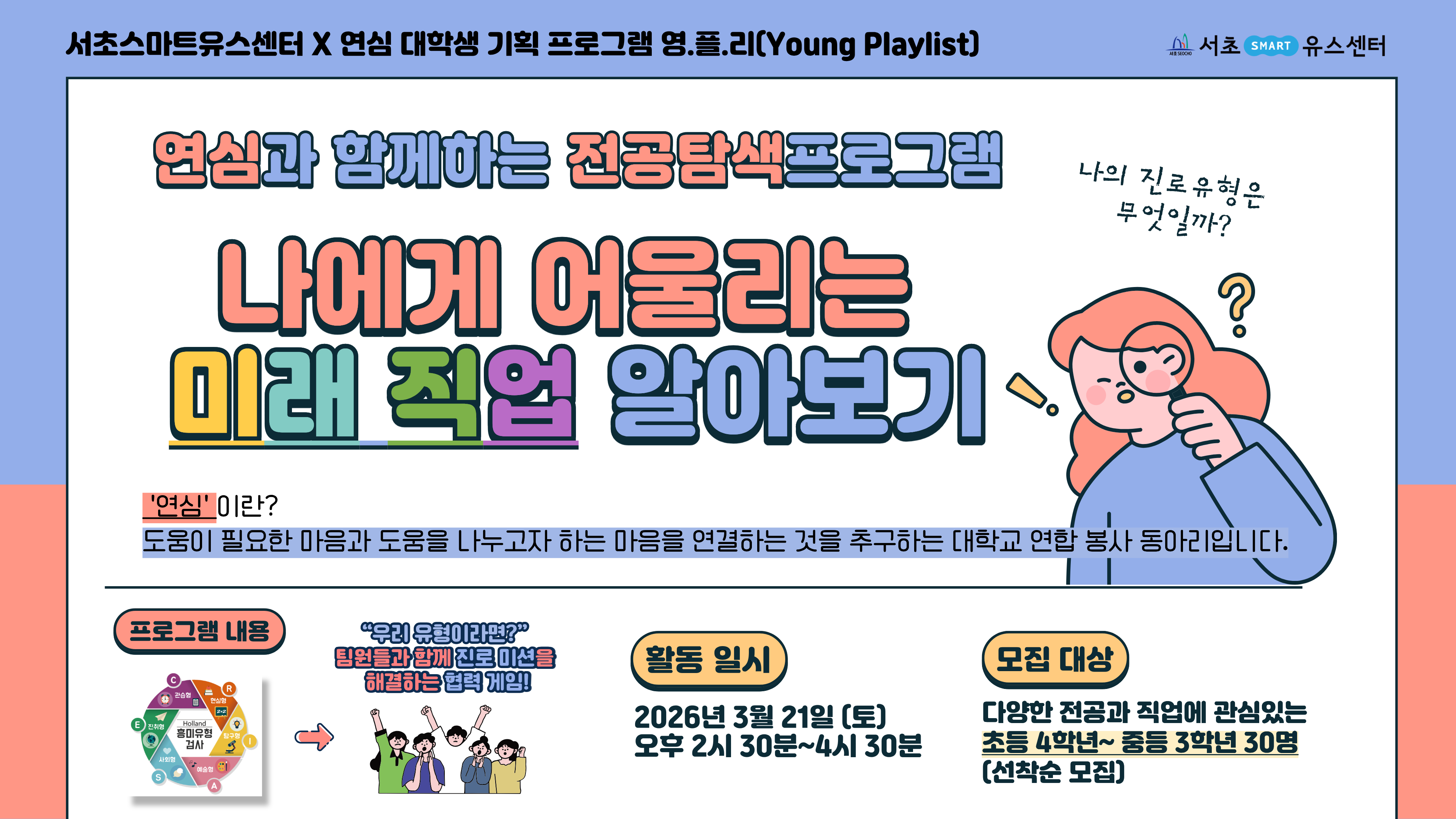 대학교 연합 봉사동아리 '연심'이 준비한 전공 및 진로탐색 프로그램