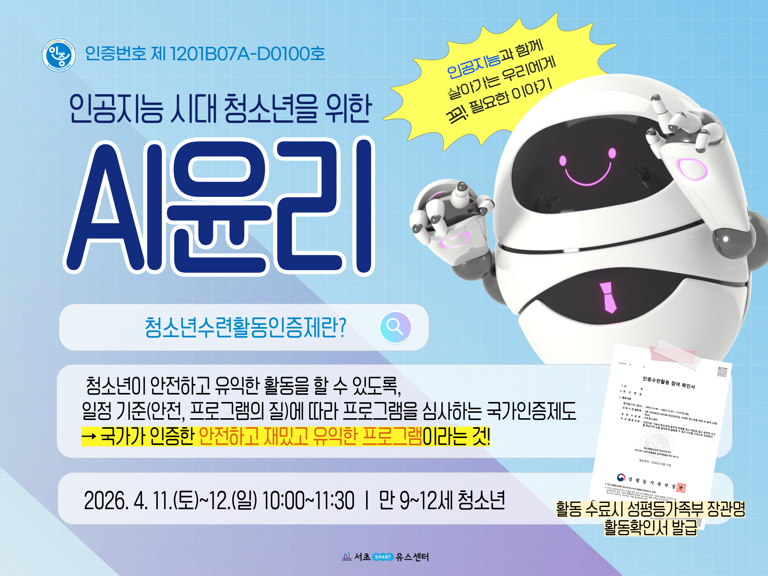서초유스센터에서는 서초구의 미래인재 양성을 위해 다양한 활동을 제공하고 있습니다.