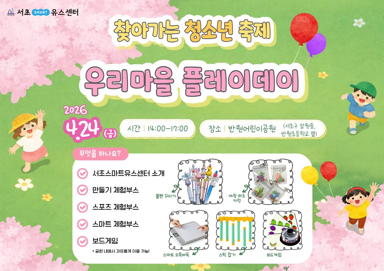 청소년의 달 '5월'을 맞이하여 운영하는 서초스마트유스센터가 직접 청소년이 있는 곳으로 찾아가는 청소년 축제