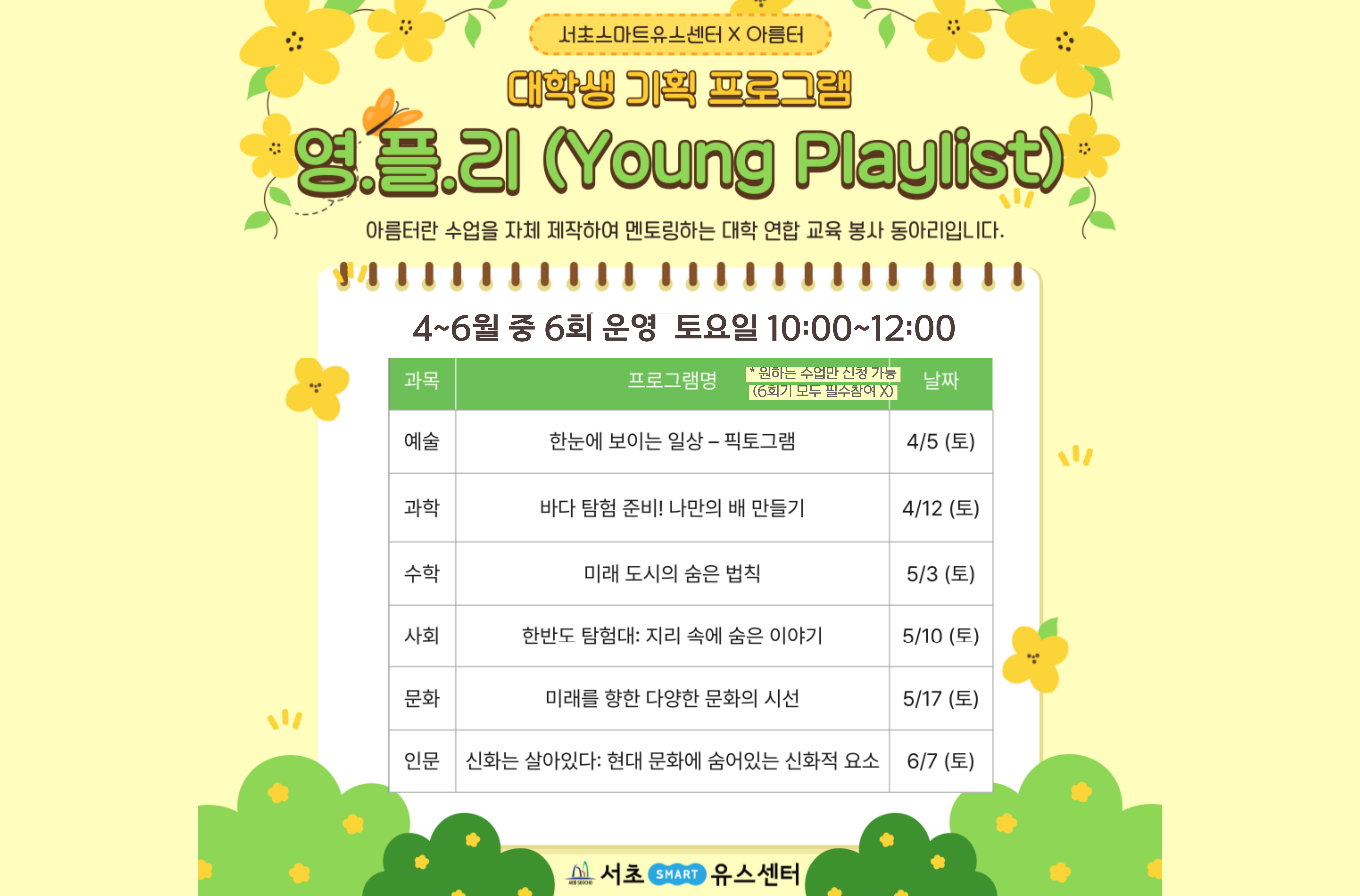 대학생 연합 교육봉사 동아리 '아름터'가 기획하고 운영하는 교과목별 프로그램