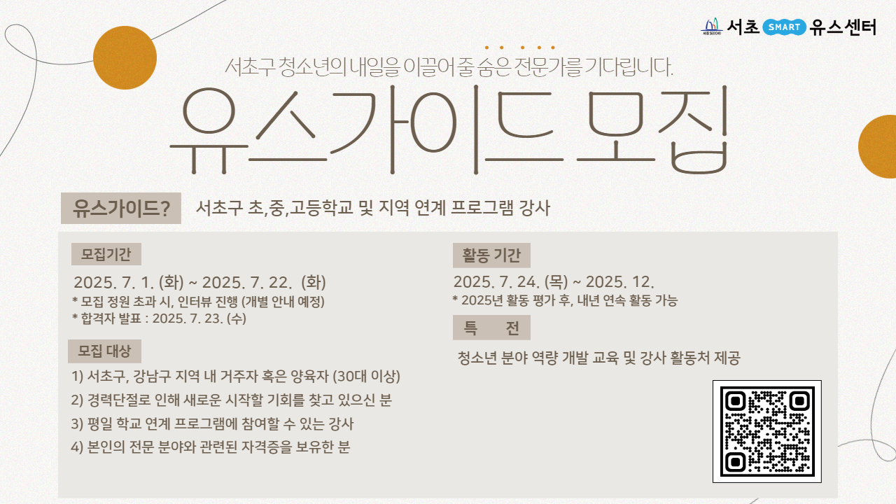 유스가이드 : 서초구 초,중,고등학교 및 지역 연계 프로그램의 강사