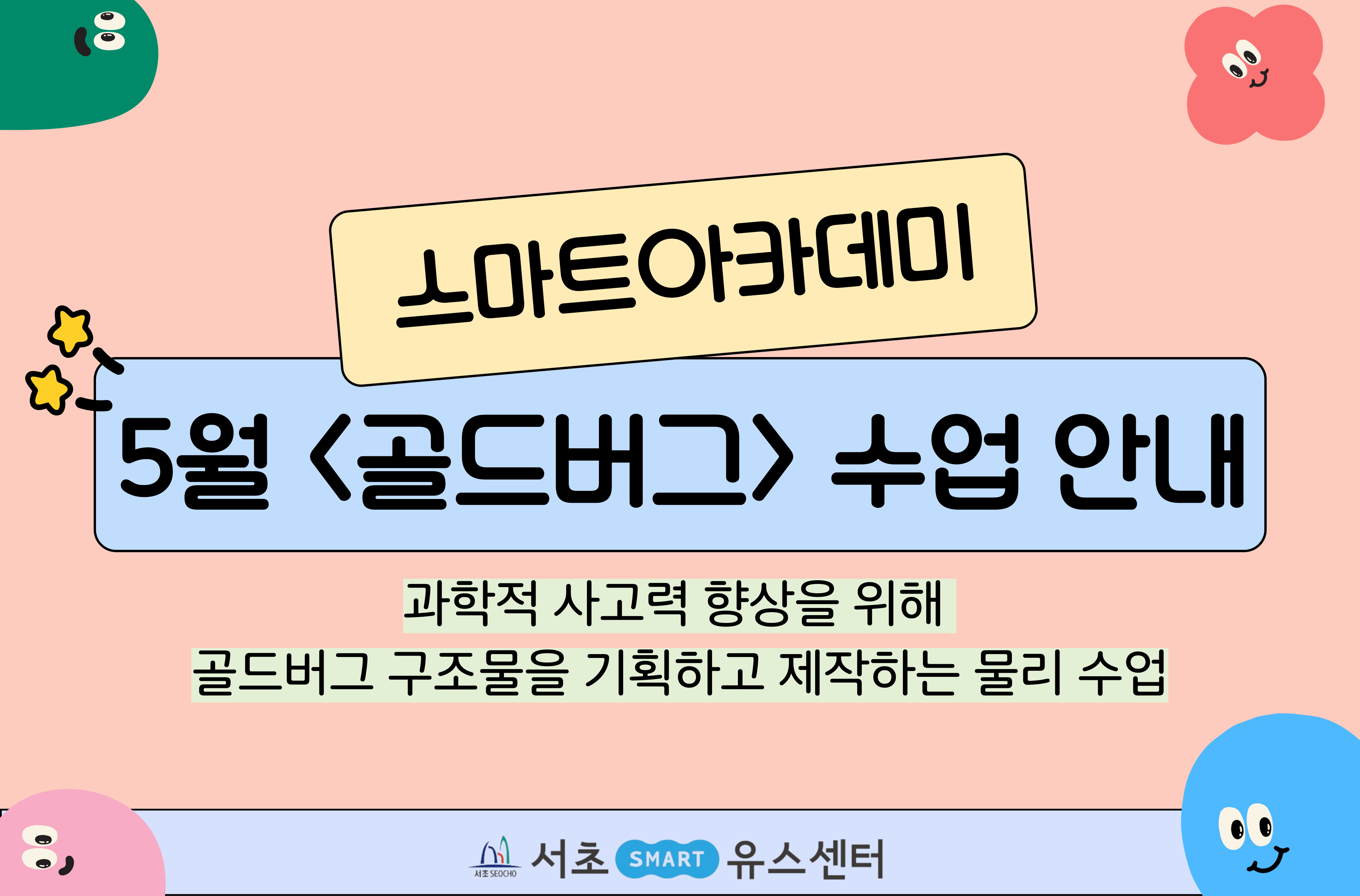 4차 산업시대를 대비한 인공지능/코딩 교육, IB교육, 3D모델링 교육 등 미래 기술과 과학 분야를 교과 과정과 융합한 평일 강좌형 교육 프로그램 * 본 프로그램은 3개월 (12회차)로 3월까지 진행되며, 해당 프로그램 신청 및 접수는 1월에 한해 진행됩니다. * 주 1회 운영 (월 4회)으로, 1월에는 4회차 수업이 진행됩니다. * 매월 신규 등록이 가능하며, 수업 중간에 참여하더라도 개별 학습속도와 난이도에 맞춰 자연스럽게 적응할 수 있도록 체계적으로 운영됩니다.