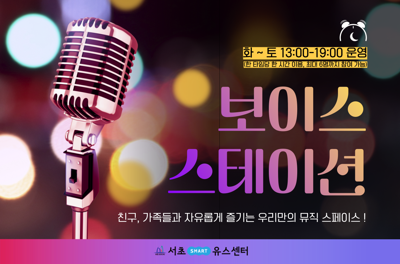 1. 서초스마트유스센터 7층 <뮤직스튜디오 상시 체험> 2. 친구, 가족과 즐겁게 즐기는 노래 체험