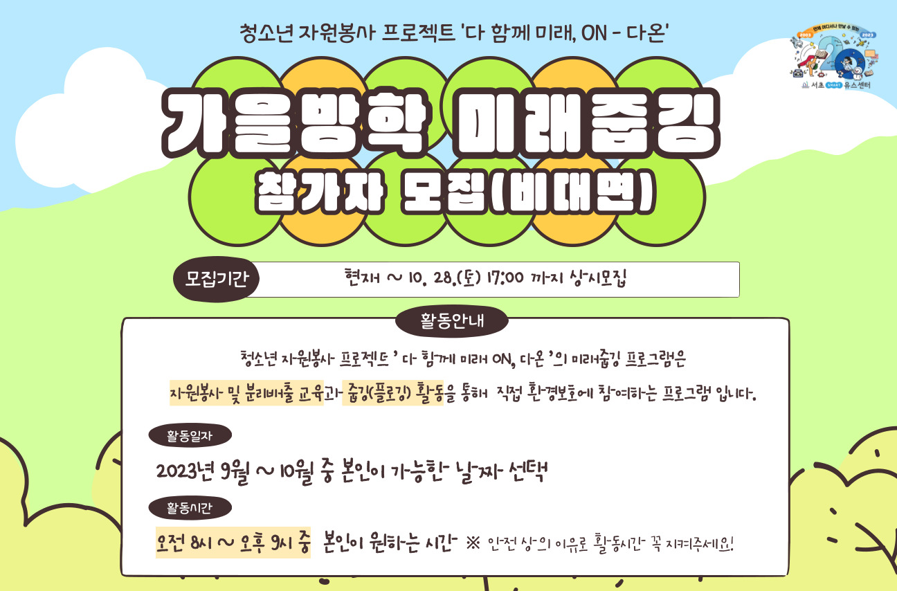 2023.09.27.(수)~2023.10.20.(금) 18:00까지 모집