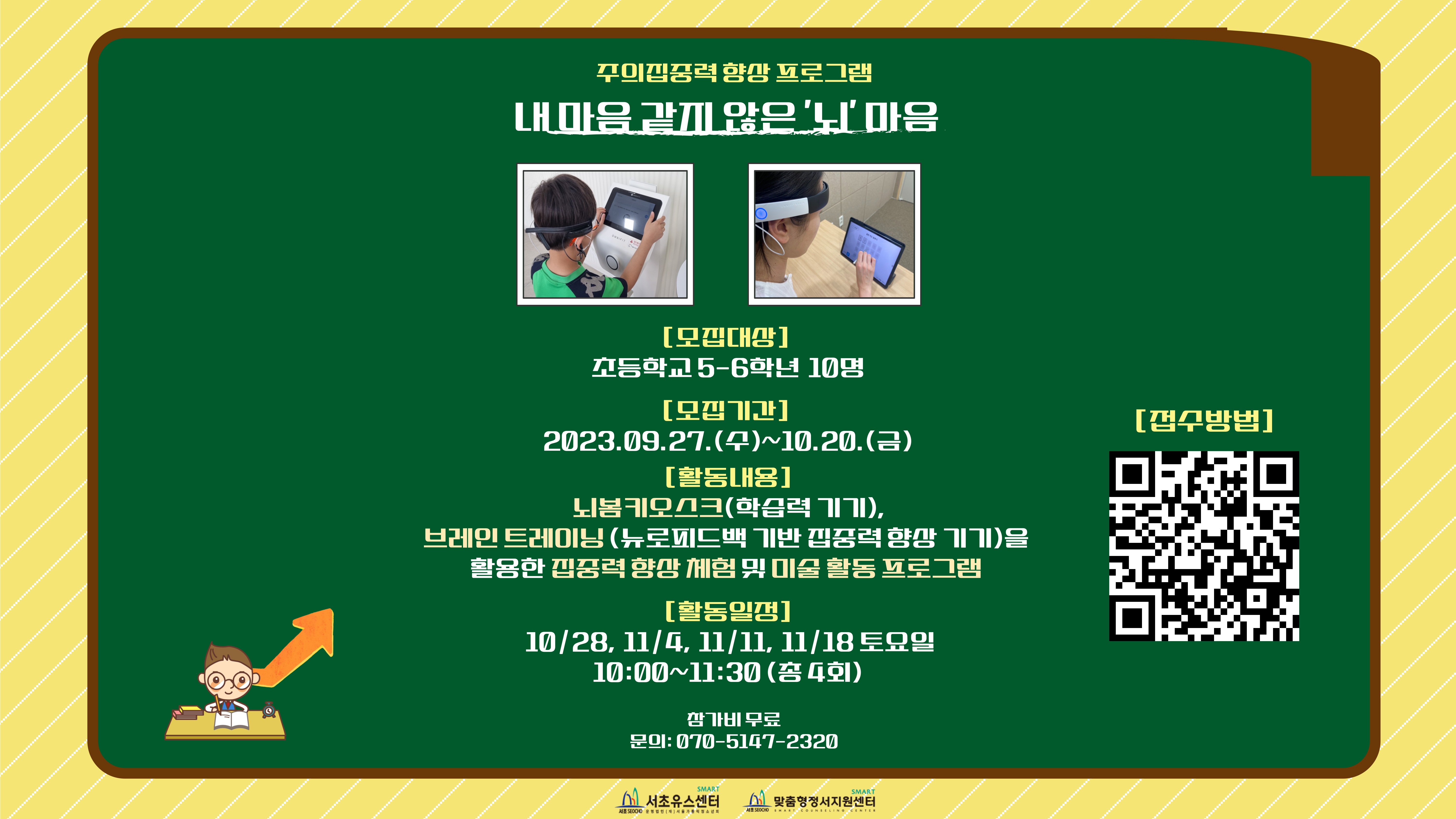 뇌봄키오스크(학습력 기기), 브레인 트레이닝 (뉴로피드백 기반 집중력 향상 기기)을 활용한 집중력 향상 체험 및 미술 활동 프로그램