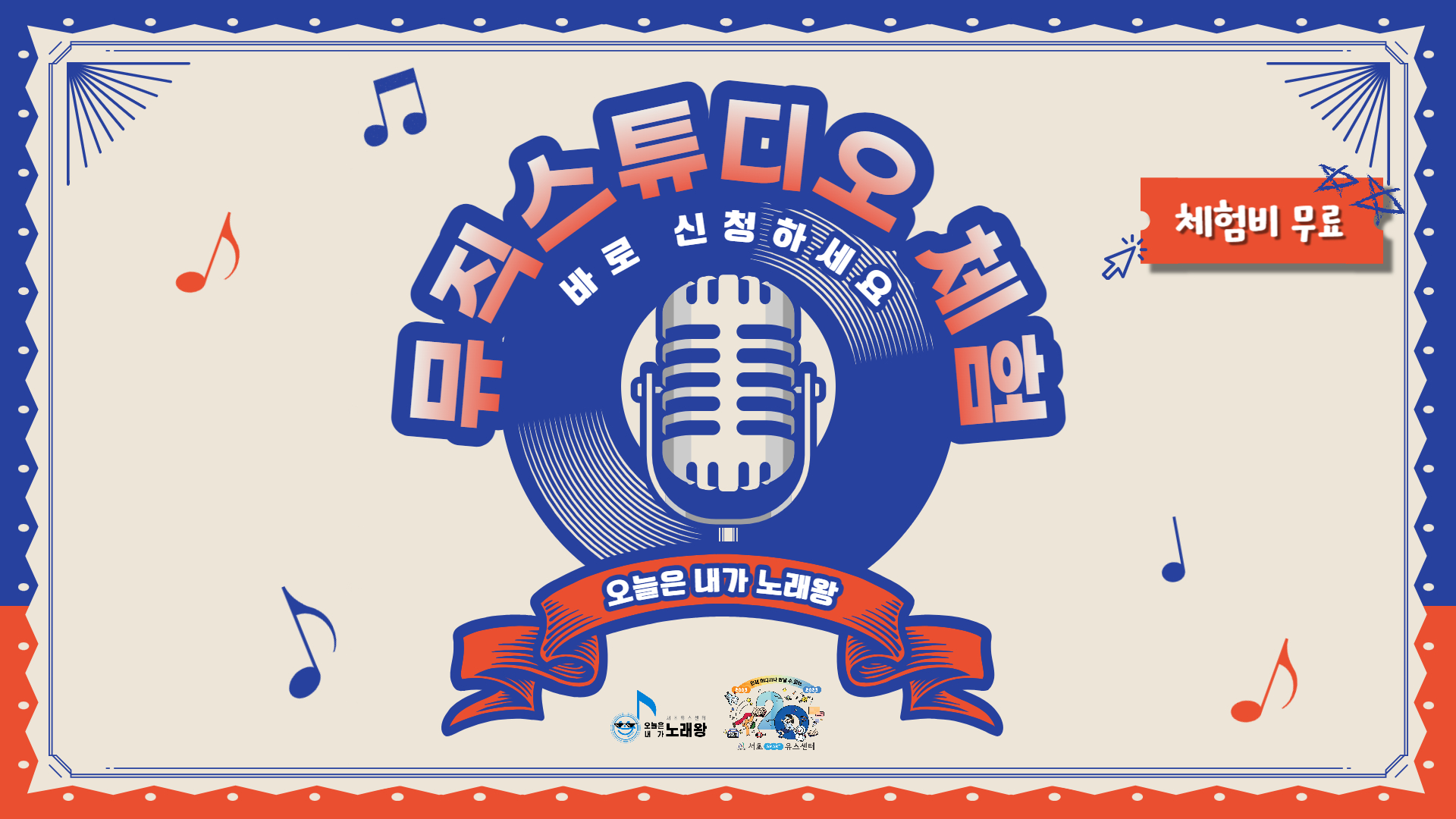 1. 센터 7층 뮤직 스튜디오 상시 체험 (한 팀당 1시간 체험) 2. 나만의 노래 커버 영상 제작