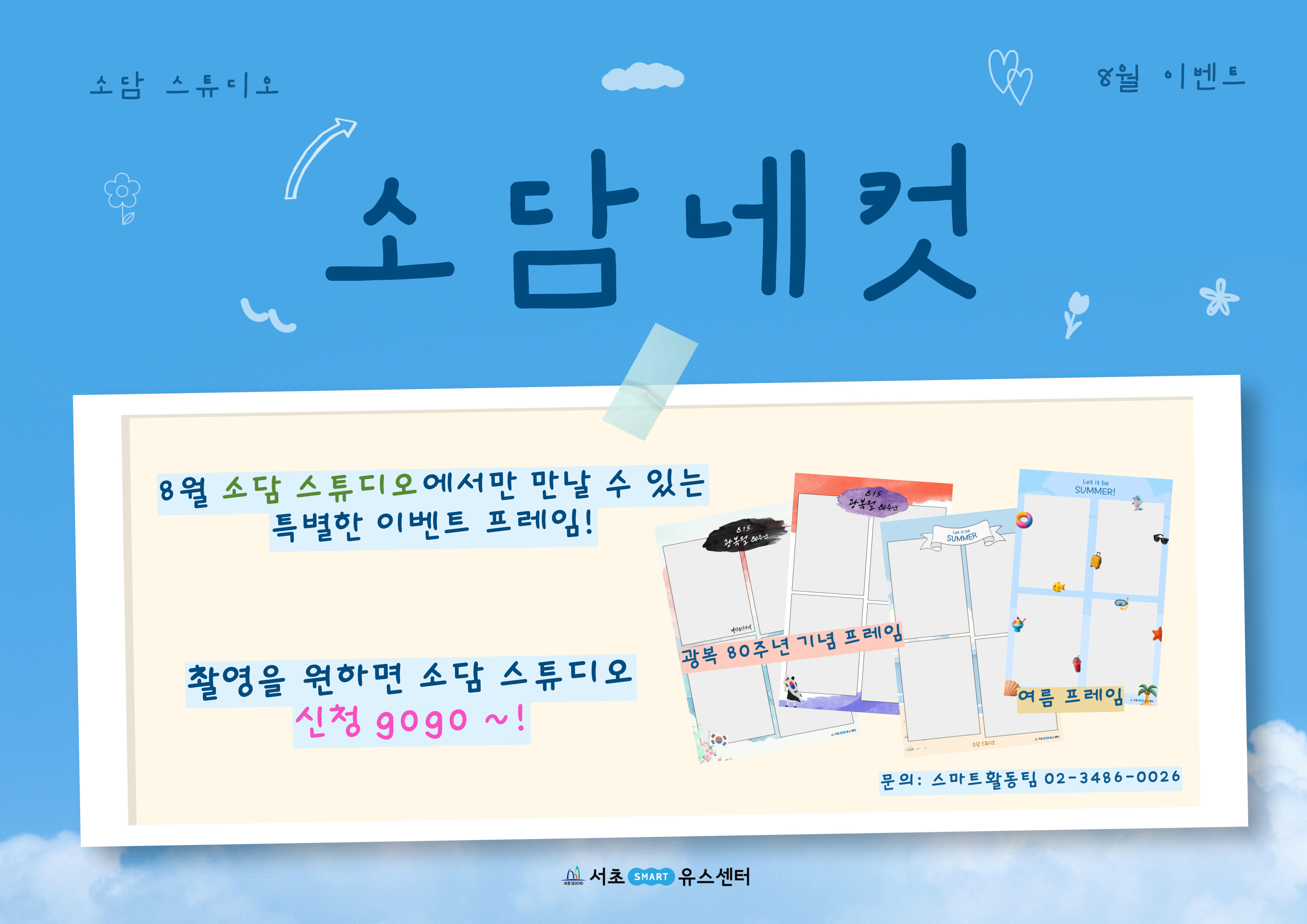 소담에서 8월에만 만날 수 있는 특별 프레임으로 소담네컷 촬영! + 소담네컷을 찍어 인스타에 공유!(선택) → 추첨을 통해 시원~한 선물 증정!