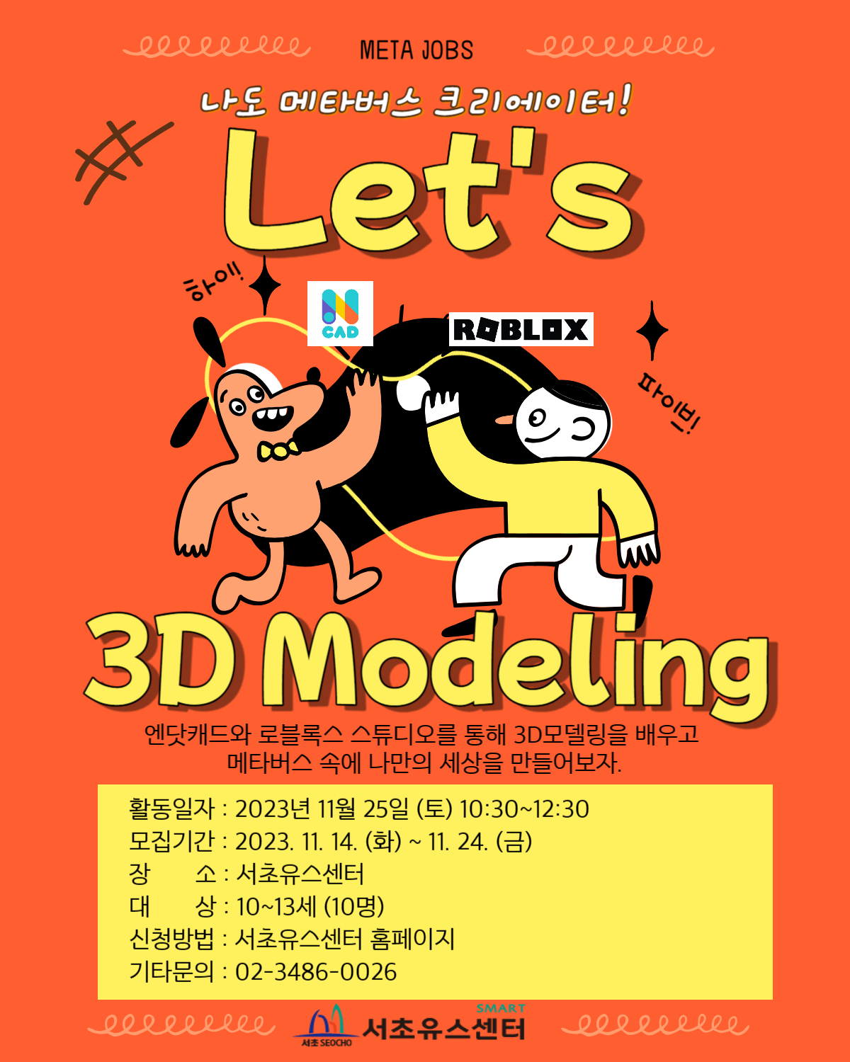 3D모델링 프로그램 '엔닷캐드'를 활용하여 메타버스에 대한 이해를 통해 나만의 캐릭터도 제작해보는 실습까지 진행하고자 합니다.