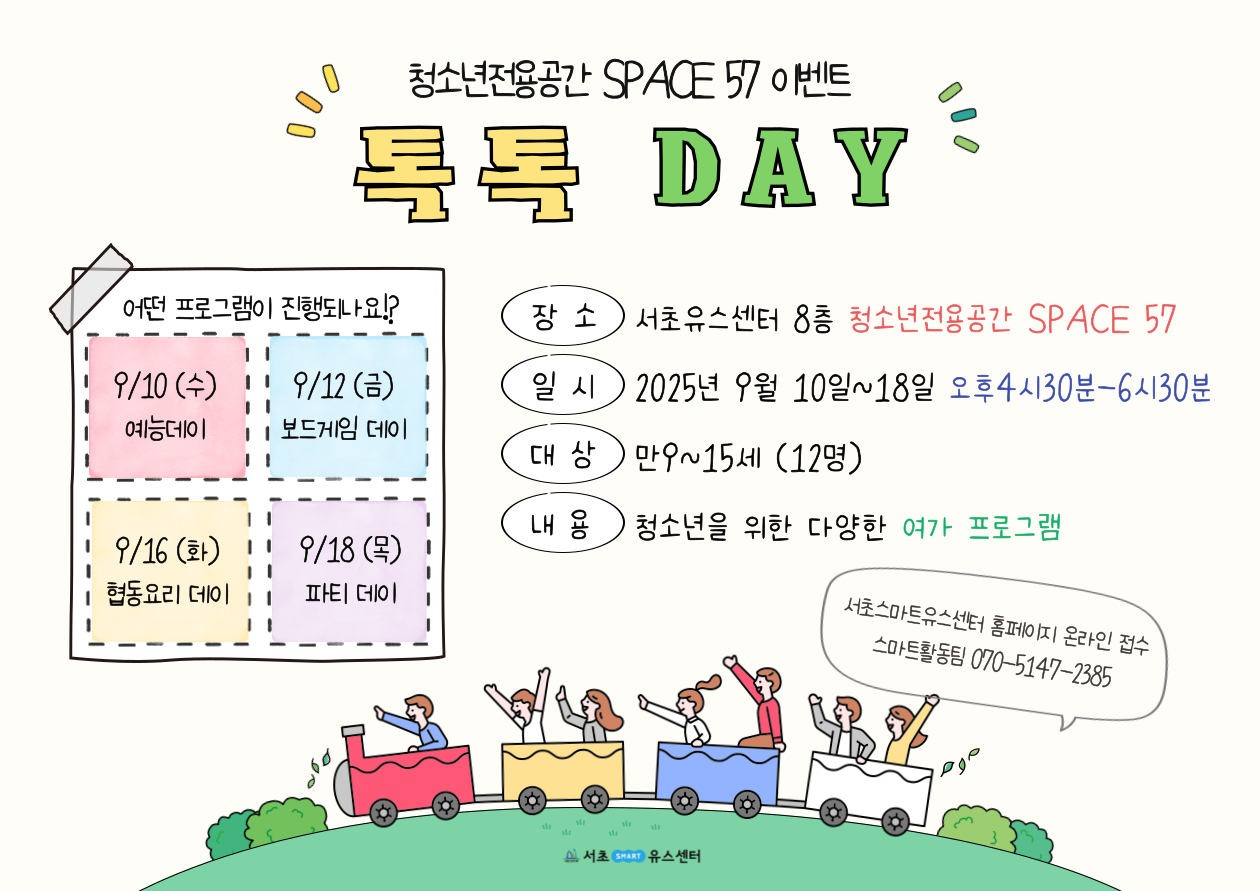 청소년전용공간에서 즐기는 여가생활 '톡톡 DAY- 예능/보드게임/협동요리/파티'